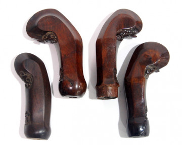 Lot Description:Four Carved Wood Kris, Keris Dagger Handles, with a Carved & Pierced Granular Motif, Java Indonesia, 19th/20th Century
