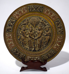 Lot Description:An Embossed Plaque with Four Standing Figures & Two Celestial Figures in the centre, probably Indian