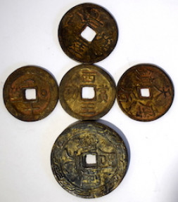 Lot Description:Five Chinese Bronze Coins in the Style of Five Dynasties, Yuan Dynasty & Ming Dynasty