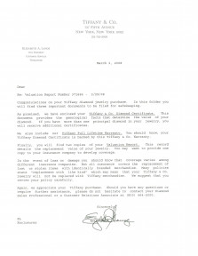 Notes:Accompanied by: Tiffany & Co. diamond certificate numbered 18435357/E12110283 stating that the 1.56 carat diamond is E colour and VVS2 clarity, laser inscribed T&Co.E12110283; a Tiffany & Co. Retail Replacement Valuation, dated 3 March 2008, Warranty, folder, box and outer box.