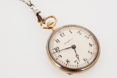 Lot Description:Tiffany & Co. - Enamel and Diamond Open Face Pocket Watch, c. 1920