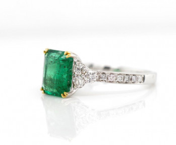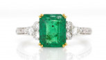 Lot #63 - Emerald, diamond and 18ct white gold ring