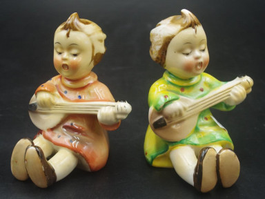 Lot Description:Two ceramic Goebel style figures playing a guitar