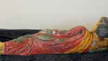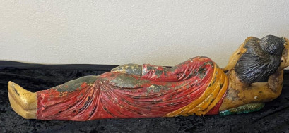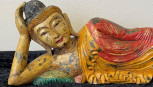 Lot Description:Burmese carved timber lying polychrome Buddha