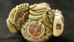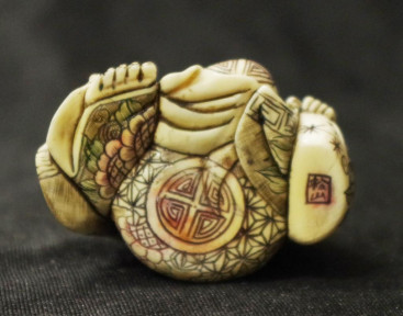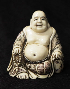 Lot Description:Japanese carved ivory Hotai figure