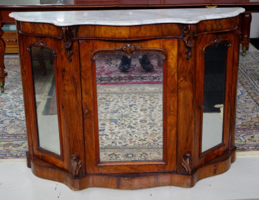 with marble top and 3 mirrored doors, 122cm wide, 38cm deep, 85.5cm high