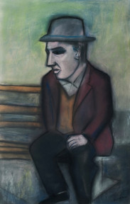 Notes:"Both these works The professional punter (which Bob and I jokingly called 'After the Last,' as well) and the bookmaker were two works that originally I left in Bob's studio - either to remind him not to gamble too much, or if he did….at least win. These are a source of great amusement to me. The professional punter in particular because despite his dishevelled appearance carries no airs or graces. He is there purely for the punt. The bookmaker on the other hand is spivvy. Part consumed by appearance & possibly the trappings of wealth and winnings. They are two works that I have loved owning as a pair and I will be interested to see where they end up. Hopefully with someone who has enjoyed them as much as I have. Bob gave me these in 1986 and they have made me smile every day," Jenny Dickerson.