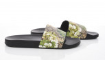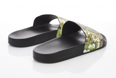 with green floral embellishment, rubber soles, stamped 'Gucci, made in Italy'