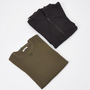 zip closure, side slip pockets, knitted rib striped cuffs and hem, labelled 'Prada, made in Italy, 100% cotton', together with a Valentino sweater in khaki green with striped ribbed hem, labelled 'Valentino, made in Italy' (2)
