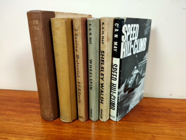 ENGLISH RACING: Six hardcover books relating to English motor racing including; 'Shelsley Walsh' 'Wheelspin' and Speed Hill-Climb' by C.A.N May' 'Motor Racing; and 'A Racing Motorist' by S.C.H Davis, the first inscribed 'J.R.W Leech Brighton' together with 'Motor Racing; by Earl Howe ' Co._x000D_ -