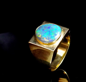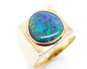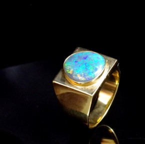 Lot Description:Black opal and 18ct yellow gold ring