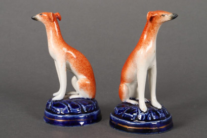 Lot Description:Pair of Staffordshire Grey Hounds, c.1880