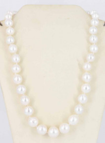 featuring off-round pearls of white lustre, grey and pinkish tones, diameter 15-12mm, blemishes, sterling silver magnet clasp. Probably from Broome. -