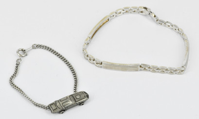 together with a 'car' stainless steel bracelet. Weight silver 18.8g. -
