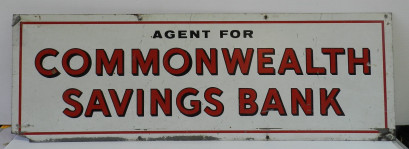 Lot Description:A Double Sided Metal & Enamel Sign "Agent for Commonwealth Savings Bank"