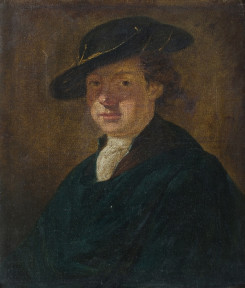 Oil on Canvas; In water-gilded frame mounted with "Watteau" plaque