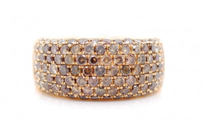 Lot Description:Pave set cognac diamond and 18ct rose gold ring
