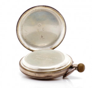 gun metal stem wind example marked Lancashire watch Co. The Sterling silver piece is a stem wind marked Dent London to the dial, JR Birmingham 1891. Approx case widths 49.5mm. the silver piece is working when tested the gun metal is not. -