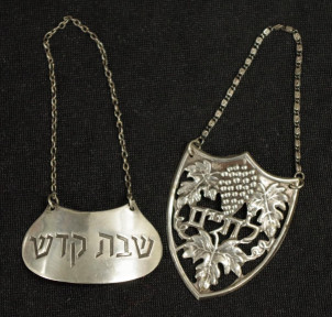 Lot #1285 - Two Judaic sterling silver decanter labels