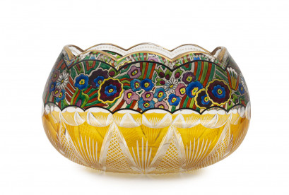 Lot Description:MOSER Bohemian amber overlay glass vase with hand-painted enamel floral frieze, late 19th early 20th century