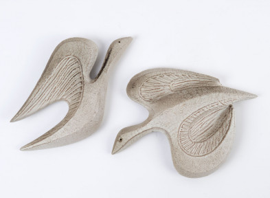 Lot Description:ELLIS pottery pair of vintage flying wall birds, mid 20th century