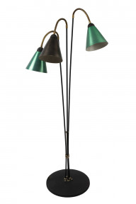 Lot Description:An Australian vintage three branch standard lamp black metal with anodised shades, circa 1950s