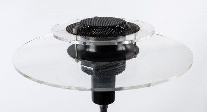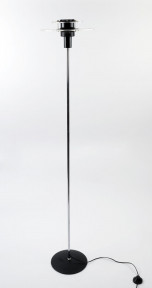 Lot Description:PEASTON Australian vintage standard lamp, black metal, chrome and glass, circa 1980s
