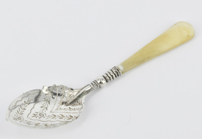 Lot #347 - A Sterling Silver And Mother-Of-Pearl Baby Spoon