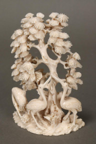 depicting three cranes below a pine tree, signature to base, height 13cm (with stand) -