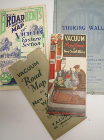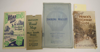 including NRMA Touring Wallet, enclosing Canberra and Queanbeyan District map and Route Maps Sydney to Canberra; Bent's Official Road and Railway map of Victoria; Vacuum Oil Company Road Map of New South Wales; and Gregory's Hume Highway Guide, Sydney to Melbourne to Sydney. -
