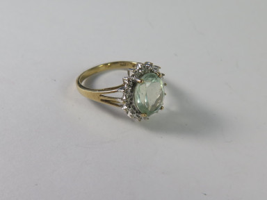 oval quartz (10 x 8mm) four-claw set with small diamonds. Size O. Weight 2.7g. -