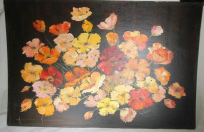 oil on board, signed lower left unframed measures 60.5cm H x 90cm W -