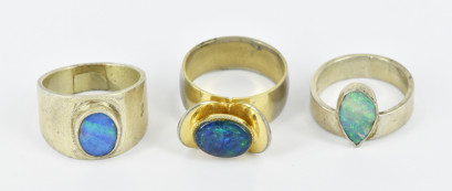 set with opals. together with a metal ring set with an opal triplet. Weight silver one 11.1g. -