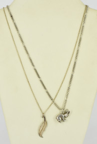 rabbit and leaf pendants on chain. Weight 17.2g. -