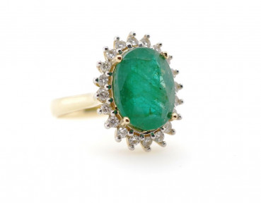 Lot Description:3.65ct Emerald, diamond and 14ct yellow gold ring