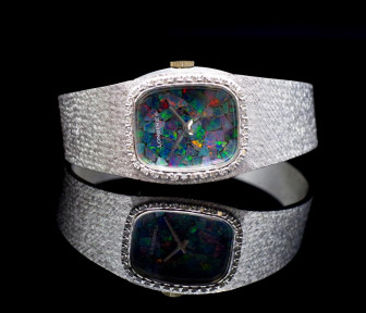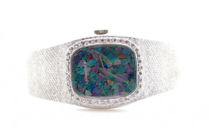 Lot Description:Longines 14ct white gold, opal and diamond watch