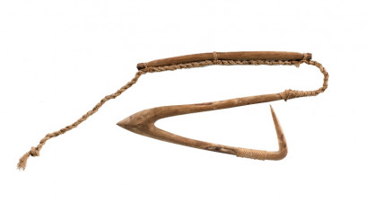 Formed hardwood with articulated shank attached with plaited fibre & cord lashing. (L95cm) -