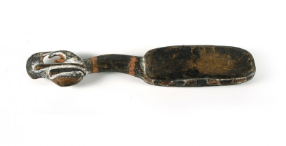 Rectangular flat pad with carved totemic handle. Blackwater River. (L43cm) -