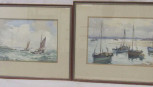 one Sailing with 'Boats at Harbour' signed lower left and lower right and measure 26.6cm H x 37.6cm W largest (2) -