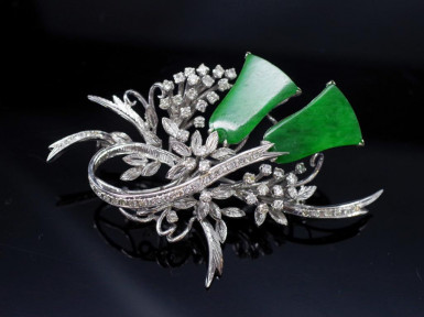Lot Description:Jade, diamond and white gold brooch C.1960s