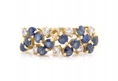 Lot Description:Sapphire and diamond set 18ct yellow gold ring