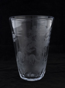 Lot Description:An Australiana art glass vase, intaglio cut landscape adorned with Australian fauna, early to mid 20th century