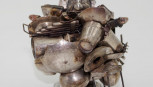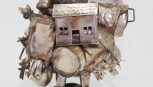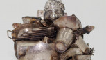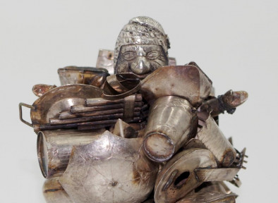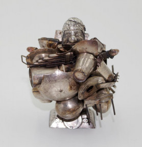 a standing figure, laden with kitchen equipment, etc, (height 9cm, weight 155grams approx). -