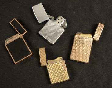 including: gold plated, Chinese lacquer decorated; and 2 other gold plated Dupont lighters; together with a vintage Zippo chrome cigarette lighter. -