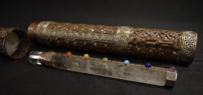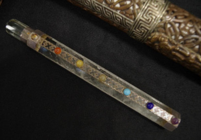 Lot #1674 - Oriental copper crystal prism bottle & cover