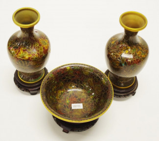 Lot Description:Pair Chinese cloisonne vases & stands