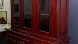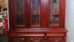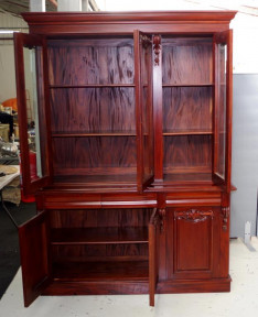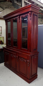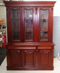 with 3 bevelled glass doors above 3 drawers and 3 carved timber panel doors, 158 46.5 220.5cm high, divided into 2 parts for removal -