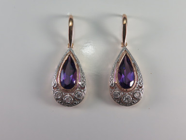Lot Description:A Pair of Amethyst And Diamond Drop Earrings