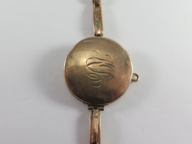 Lot #405 - A 9ct Rose Gold 'Watch Case' Locket And Sprung Bracelet