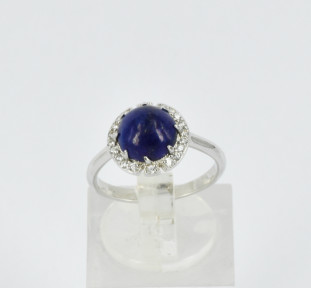 the round cut cabochon surrounded by CZ, on silver. Size K. Weight 2g. -